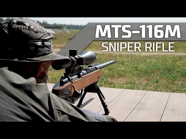 The 7.62mm MTs-116M sniper rifle, based on the MTs-116 sporting rifle and chambered for 7.62x54mm or 7.62x51mm cartridges is designed to destroy unprotected enemy manpower or manpower wearing body armor, and thin-skinned vehicles. Reloading is manual, and the barrel bore is locked by a longitudinally sliding bolt.